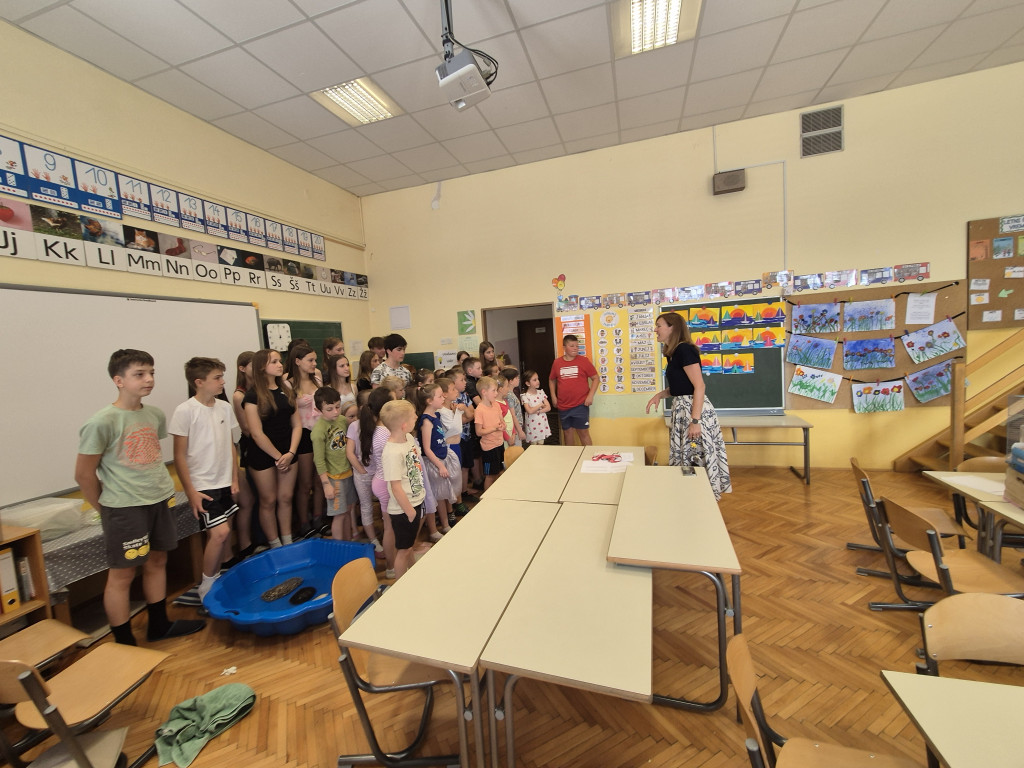 Prvošolci so z očmi polnimi radovednosti poslušali, sodelovali in postavljali številna vprašanja. Največje veselje pa je bilo, ko so imeli priložnost, da so se z živalmi tudi rokovali, jih pobožali in celo hranili. Iskren smeh in veselje so napolnili učilnico – tako učenci kot učitelji smo bili navdušeni. Zanimanje in povezanost z živalmi sta se čutila v vsakem trenutku, saj je bil to poseben dogodek, ki bo vsem ostal v lepem spominu.