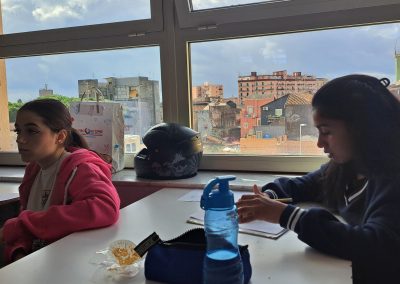 Učitelji smo imeli tudi priložnost za job shadowing – spremljali smo pouk, in sicer pouk umetnostI, kjer so dijaki spoznavali oblačila starih Grkov in Rimljanov, zgodovini ter pri uri fizike, kjer je profesor razlagal pospešek in spodbujal aktivno in zbrano sodelovanje učencev.