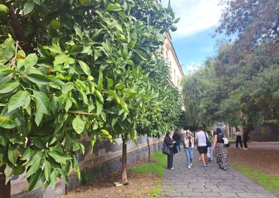 Današnji dan je bil namenjen spoznavanju italijanskega šolskega sistema in sodelovanju pri različnih delavnicah. Učenci vseh treh partnerskih držav so sodelovali v skupinskih delavnicah s področij grafičnega oblikovanja, likovne umetnosti in multimedije. Vsebine so bile povezane s skupnimi temami projekta: digitalna umetnost, enakost spolov, dediščina, delo za skupnost in jeziki.