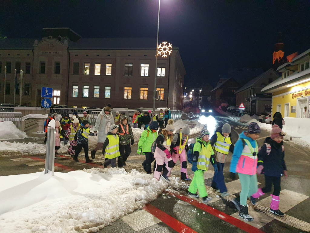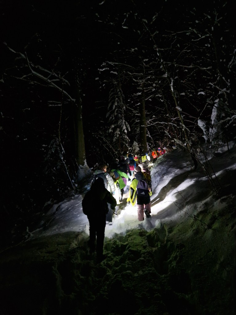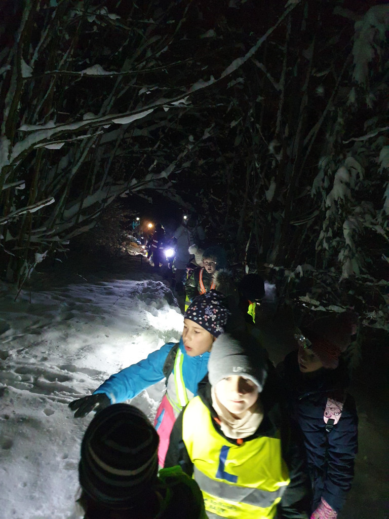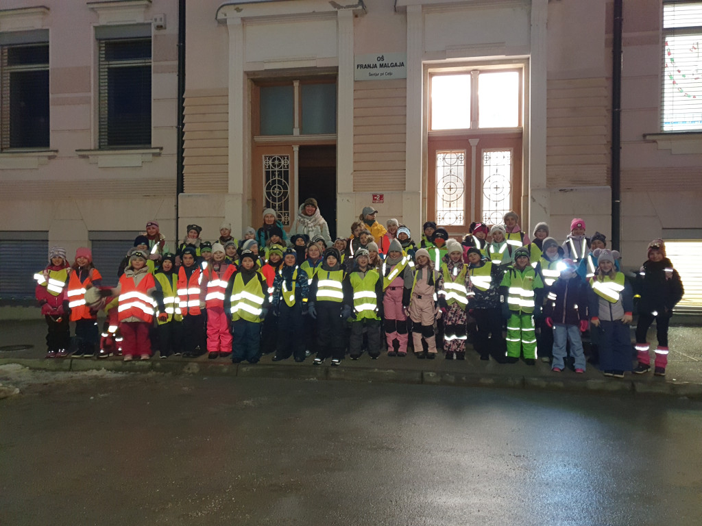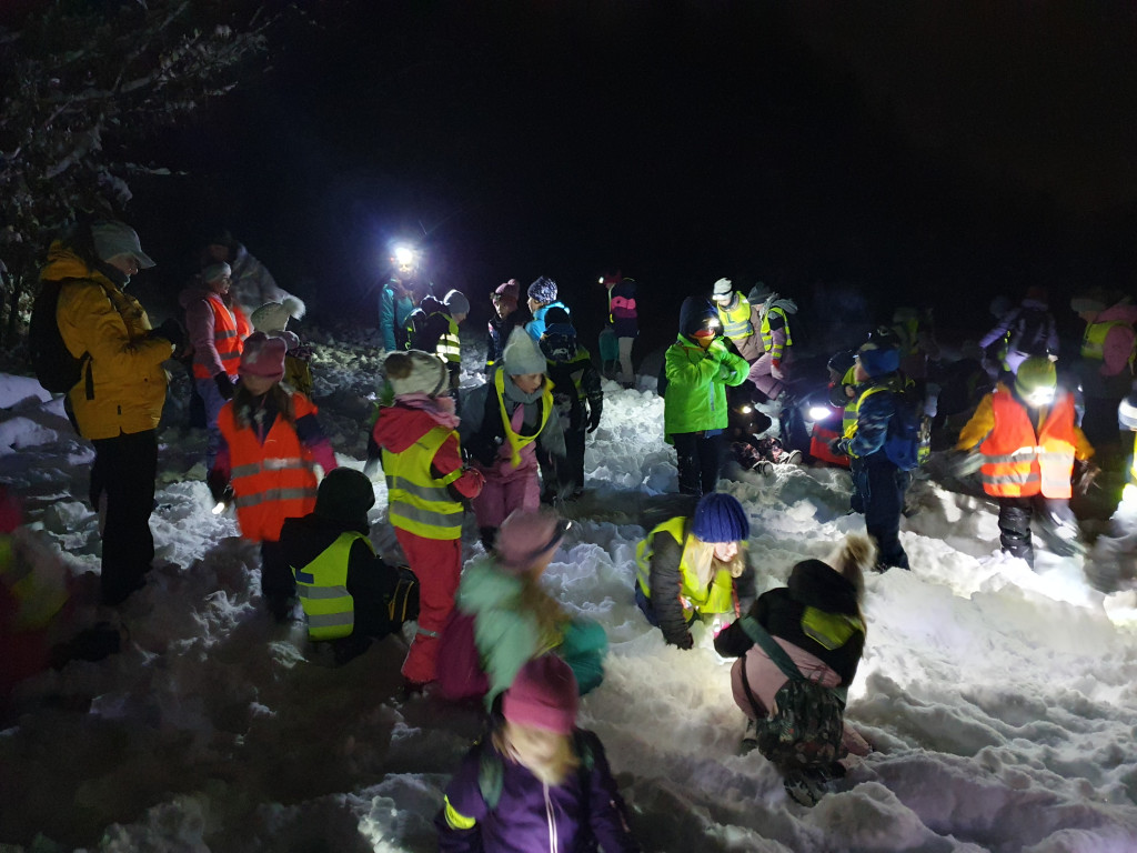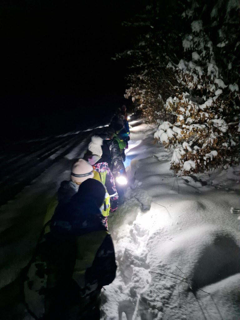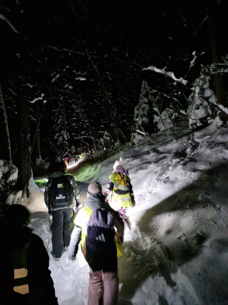 Ker nas je letošnja zima prijetno presenetila z obilico snega, smo se v sredo, 7. januarja 2026, z mladimi člani planinskega krožka odpravili na nočni pohod. Kar 48 učencev je s svetilkami, odsevnimi brezrokavniki in kresničkami raziskovalo okolico Šentjurja.  Hodili smo po znanih poteh, ki pa so v snežnih razmerah izgledale popolnoma drugačne. Hoja po celem snegu ima svoj čar, a od nas zahteva tudi več napora, zato smo se še posebej razveselili postanka, kjer nas je kuhar Jani pocartal s toplim čajem in slastnimi piškoti. Iskreno se mu zahvaljujemo za prijetno presenečenje!